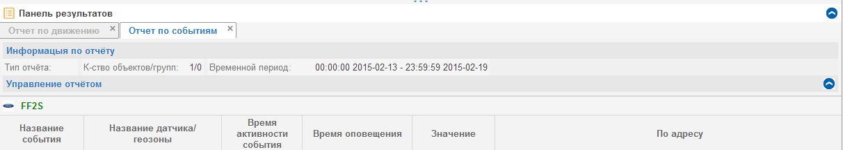 Отображает список событий по выбранным объектам за выбранный период времени. Для понимания того, что такое события, как они работают и для чего они нужны, обратитесь в в раздел данного руководства «События».