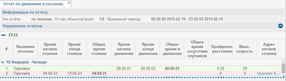 - Время начала стоянки, время конца стоянки, общее время стоянки - указаны даты определения начала и конца стоянки автомобиля, на котором установлено устройство (GPS/Глонасс-трекер).